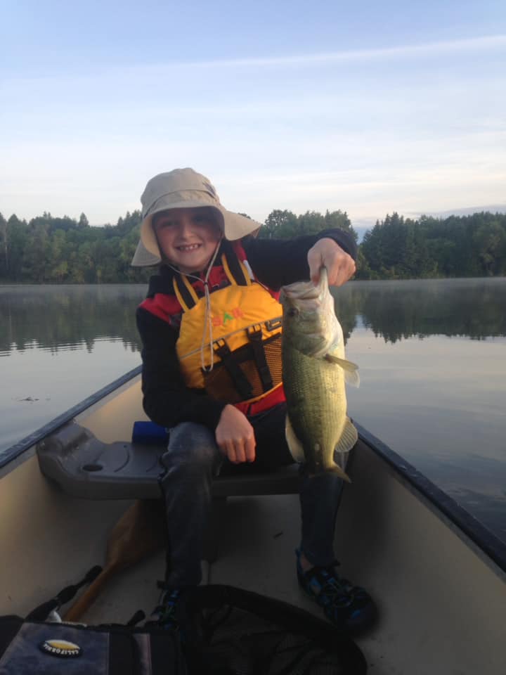 Last Friday, my dad and I went fishing for large mouth bass in Southern Ontario, on a small lake in our canoe. We got up at 5:00 am and were on the water by 5:27.